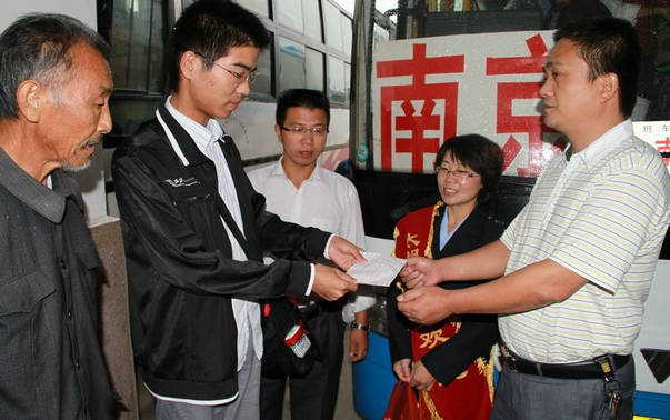 太湖分公司領(lǐng)導得知姐弟倆的情況后,隨即與考生所在鄉村取得聯(lián)系。決定從公司緊張的辦公經(jīng)費中解決姐弟倆大學(xué)期間的路費。9月10日是弟弟陳先義報道的日子,太湖分公司領(lǐng)導曹全龍同志代表太湖分公司全體汽運人親手將兩張太湖至南京的車(chē)票送到陳先義同學(xué)手中,并鼓勵他們樹(shù)立信心,正確面對暫時(shí)的困難,好好學(xué)習,以過(guò)硬的本領(lǐng)回報社會(huì )。受助大學(xué)生陳先義對太湖分公司的無(wú)償援助表達了感激之情。
