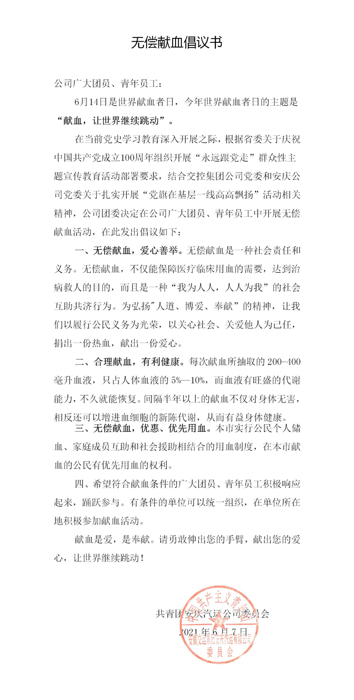 無(wú)償獻血倡議書(shū)