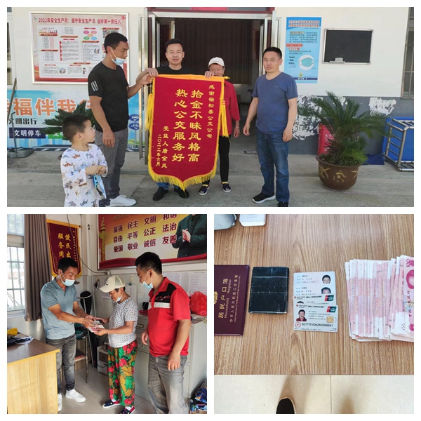 “這4700多元錢(qián)及所有的卡證都在,這要是丟了又正趕上疫情,補辦就太麻煩了。多虧了你們5路公交車(chē)黎石保師傅,他拾金不昧的精神太可貴了,真的真的,非常感謝!”6月8日,在宿松城市公交分公司,一位上年紀的女失主激動(dòng)地對工作人員說(shuō)。