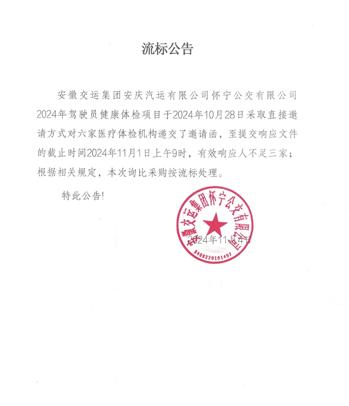 懷寧公交公司2024年駕駛員健康體檢項目流標公告